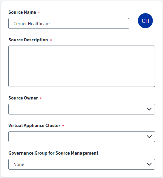 (Optional) Select the appropriate Governance Group for Source Management from the drop-down list. For more information about governance groups, refer to Associating Governance Groups with a Source.