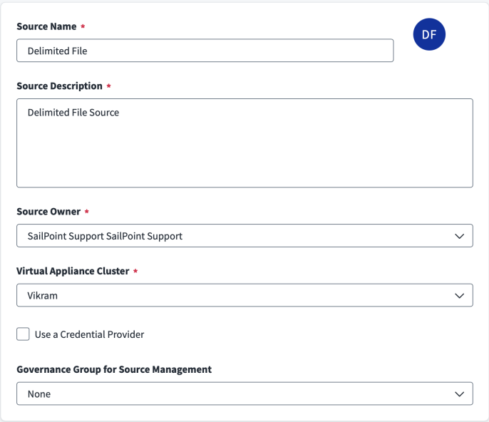Select a Virtual Appliance Cluster that will be used as the application connector for the source. For more information about configuring and deploying virtual appliances, refer to the Virtual Appliance Reference Guide.