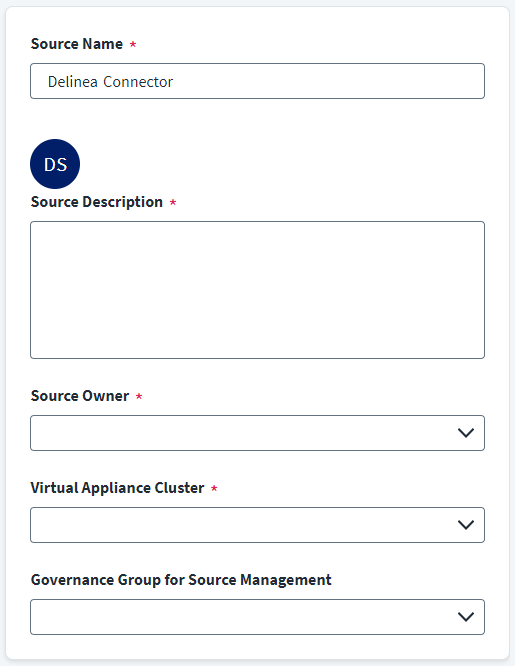 (Optional) Select the appropriate Governance Group for Source Management from the drop-down list. For more information about governance groups, refer to Associating Governance Groups with a Source.