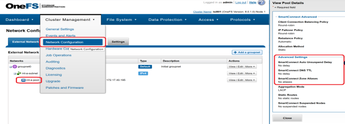 These are available under the IP Pool Settings, in the Network Configuration section of the Isilon OneFS Admin Console, under the Cluster Management >> Network Configuration tab.