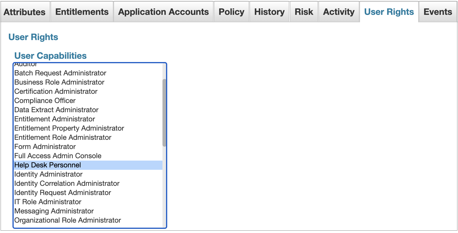 To extend this feature to users capable of requesting for others, provide appropriate additionalUser Capabilitiesunder User Rights to IdentityIQ ServiceNow Service Catalog Admin Setup. -