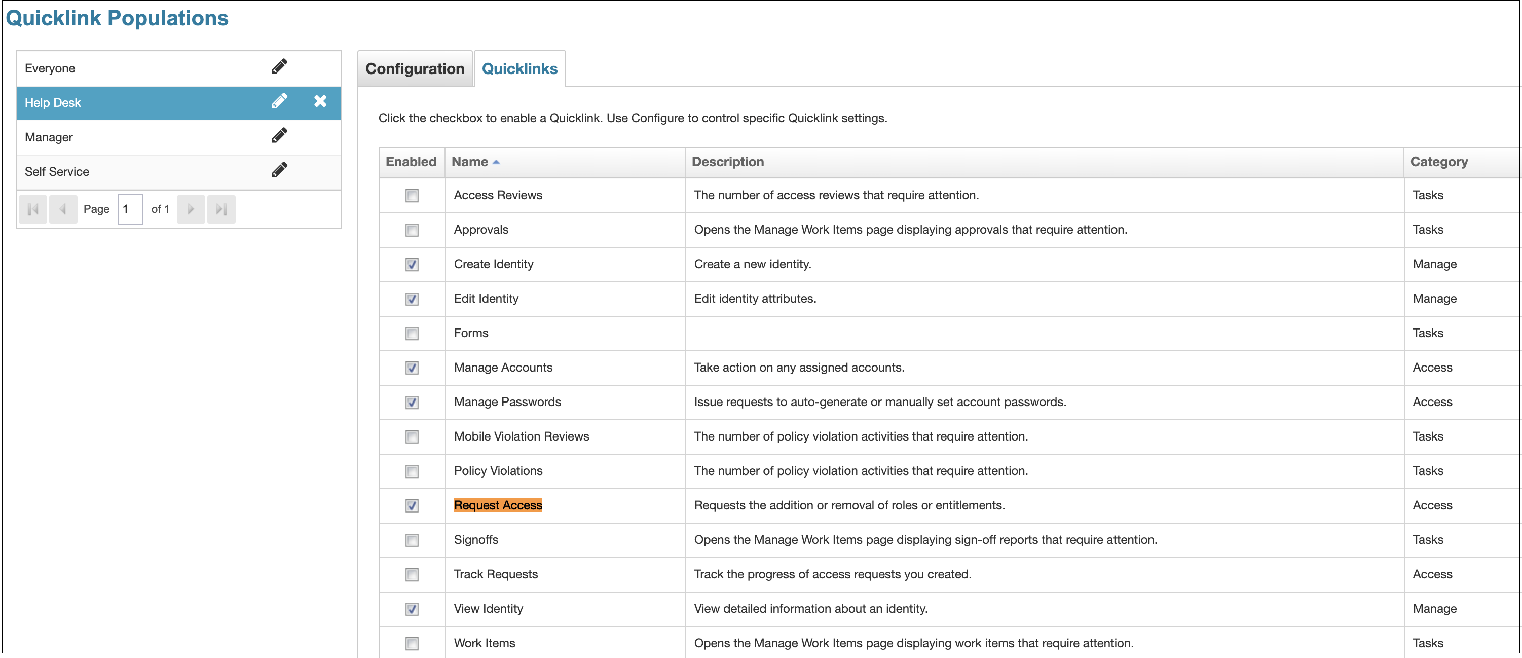Go to Quicklinks > Quicklink Populations, and select Help Desk.