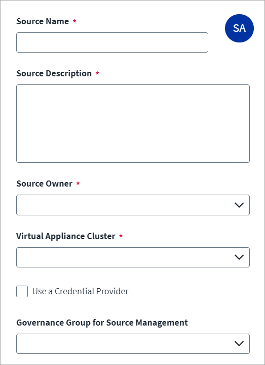 (Optional) Select the appropriate Governance Group for Source Management from the drop-down list. For more information about governance groups, refer to Associating Governance Groups with a Source.