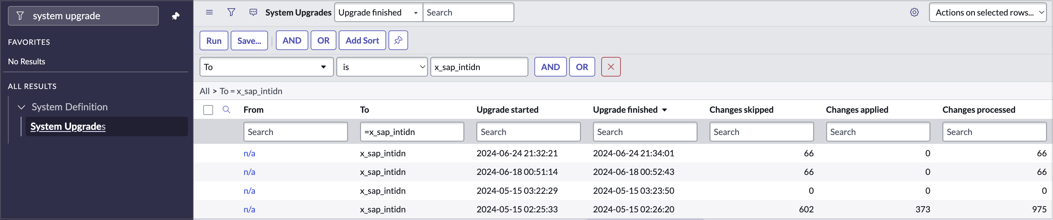 Go to System Diagnostics > Upgrades History and apply the filter with
