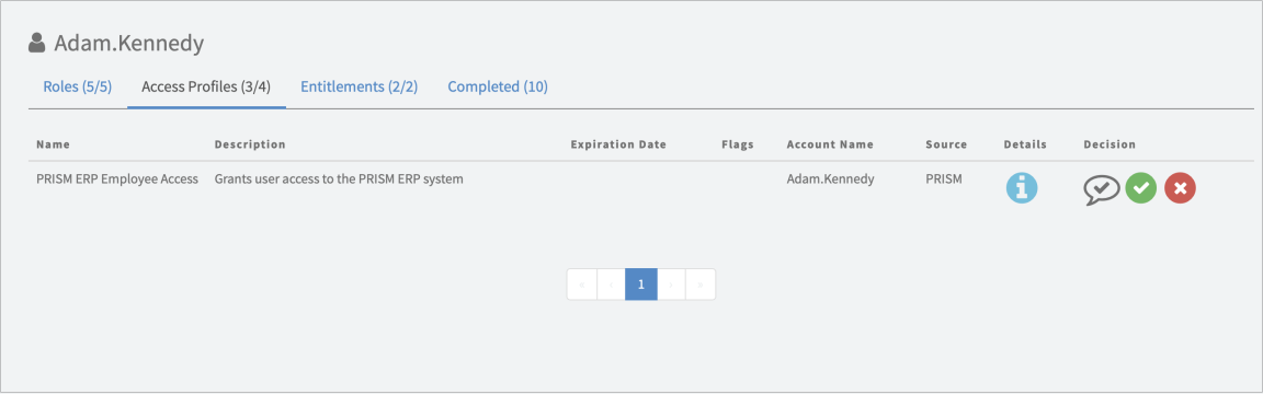 This widget displays all access items that need to be reviewed or have already been reviewed for the user.