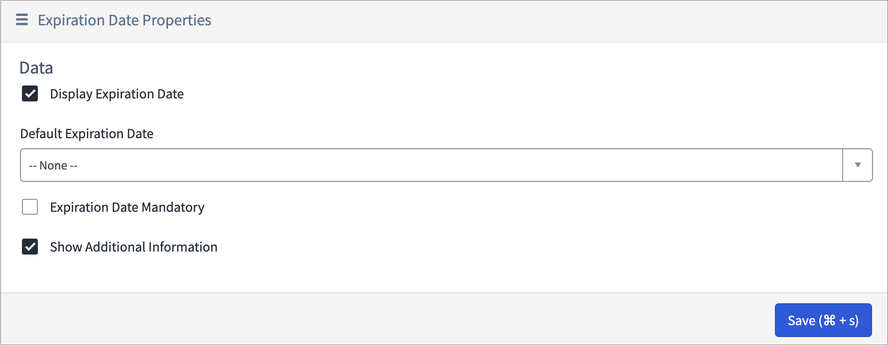 When selected, the field is displayed. Deselect this option to hide the expiration date field.