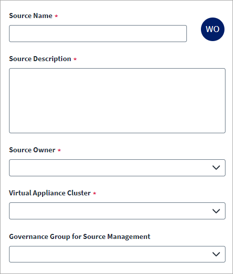 (Optional) Select the appropriate Governance Group for Source Management from the drop-down list. For more information about governance groups, refer to Associating Governance Groups with a Source.