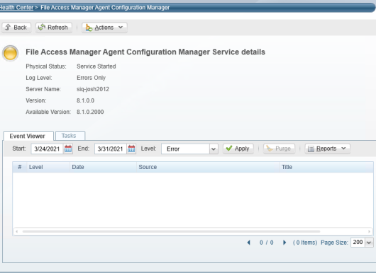 - Version: The File Access Manager version that is running, as well as any pending versions.
