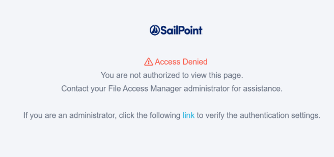 Select the link in the Access Denied message to be taken to the authentication settings where they can be verified. Or contact your File Access Manage administrator for assistance.