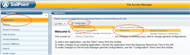 Admin Client > Applications > Configuration > Activity Monitoring > Responses> Manage Responses.