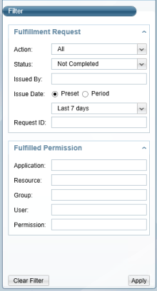 Access Fulfillment actions involves the viewing of fulfillment requests and their statuses.