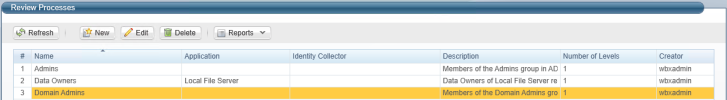 The Review Processes window displays with a list of all the review processes.
