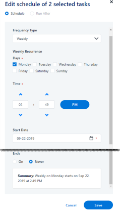 When editing more than one task at the same time, you cannot select Run After.