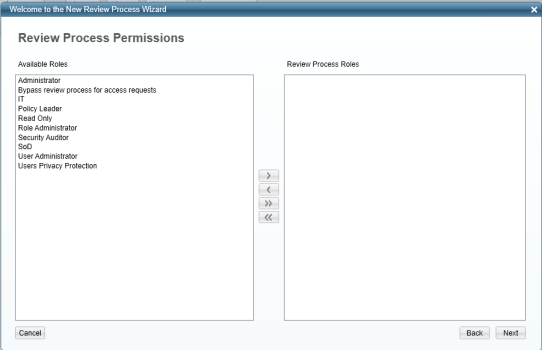Select > or > to associate available roles to review process roles.