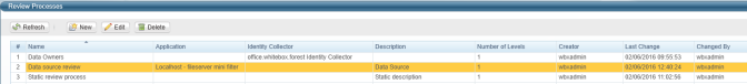 The Review Processes window displays with a list of all the review processes.