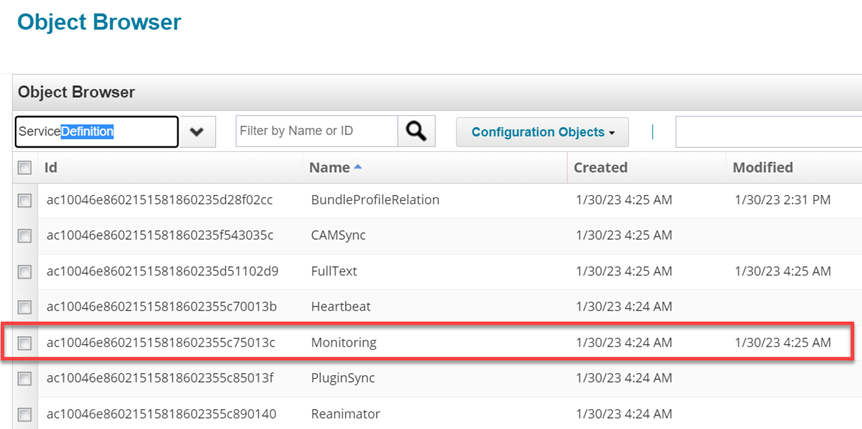 The ServiceDefinition object contains the default monitoring configuration for all servers; you can override the configuration settings defined here on a server-by-server basis by settings in the monitoringConfig entry in the Server object, as described in the section below.