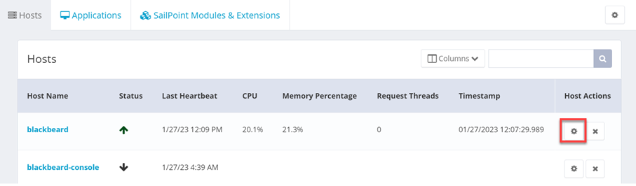 Each host can be configured by clicking the gear in the Host Actions column for that host.