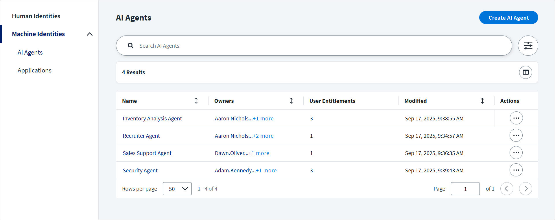 Aggregate AI agent data from supported sources. You can also create AI agents within Identity Security Cloud.