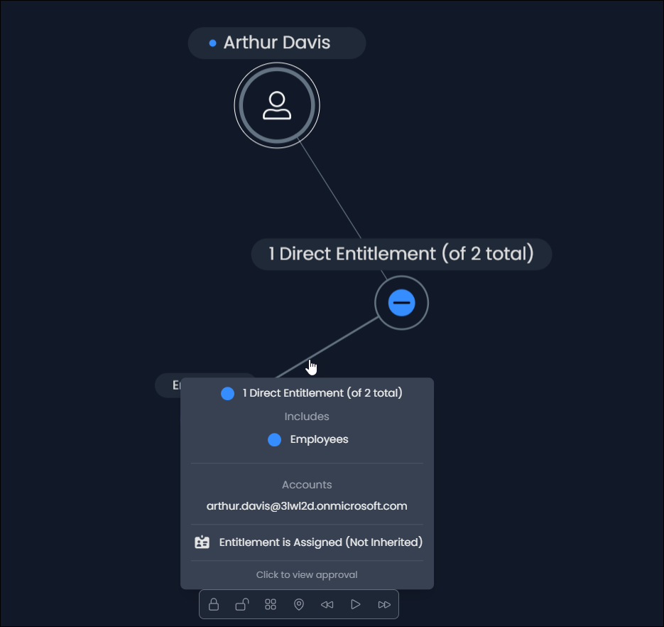 Node label - Hovering over an identity shows the labels of the identity and its access items. Hovering over an access item highlights only its connections and their labels.