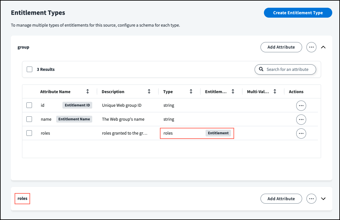 If necessary, edit which attributes are listed as the Entitlement Name and ID by editing the entitlement type.