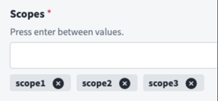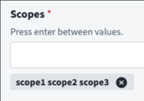| Scopes | Enter one or more values. Press Enter between values. To remove one that has been added, select the remove icon |